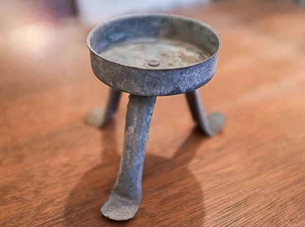 キャンドルの小さな火のゆらぎとスタンドのくすみ具合が